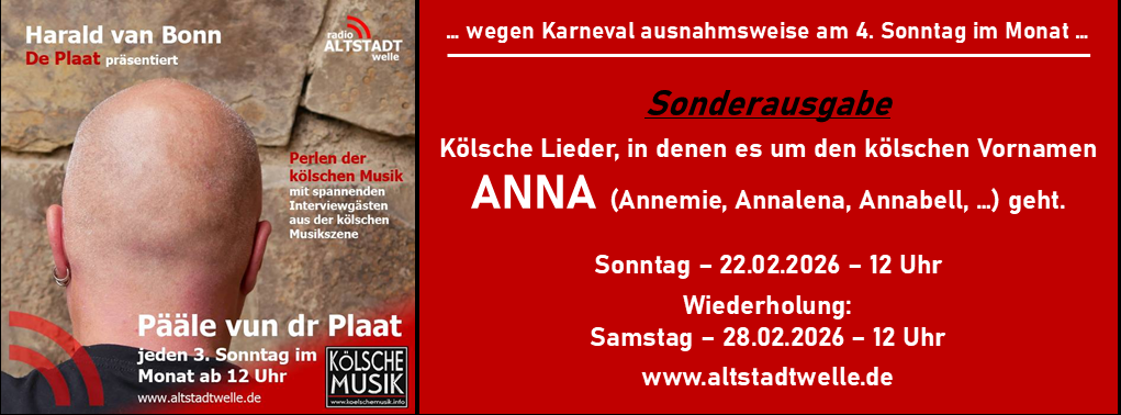 WEGEN KARNEVAL AUSNAHMSWEISE AM 4. SONNTAG IM MONAT!