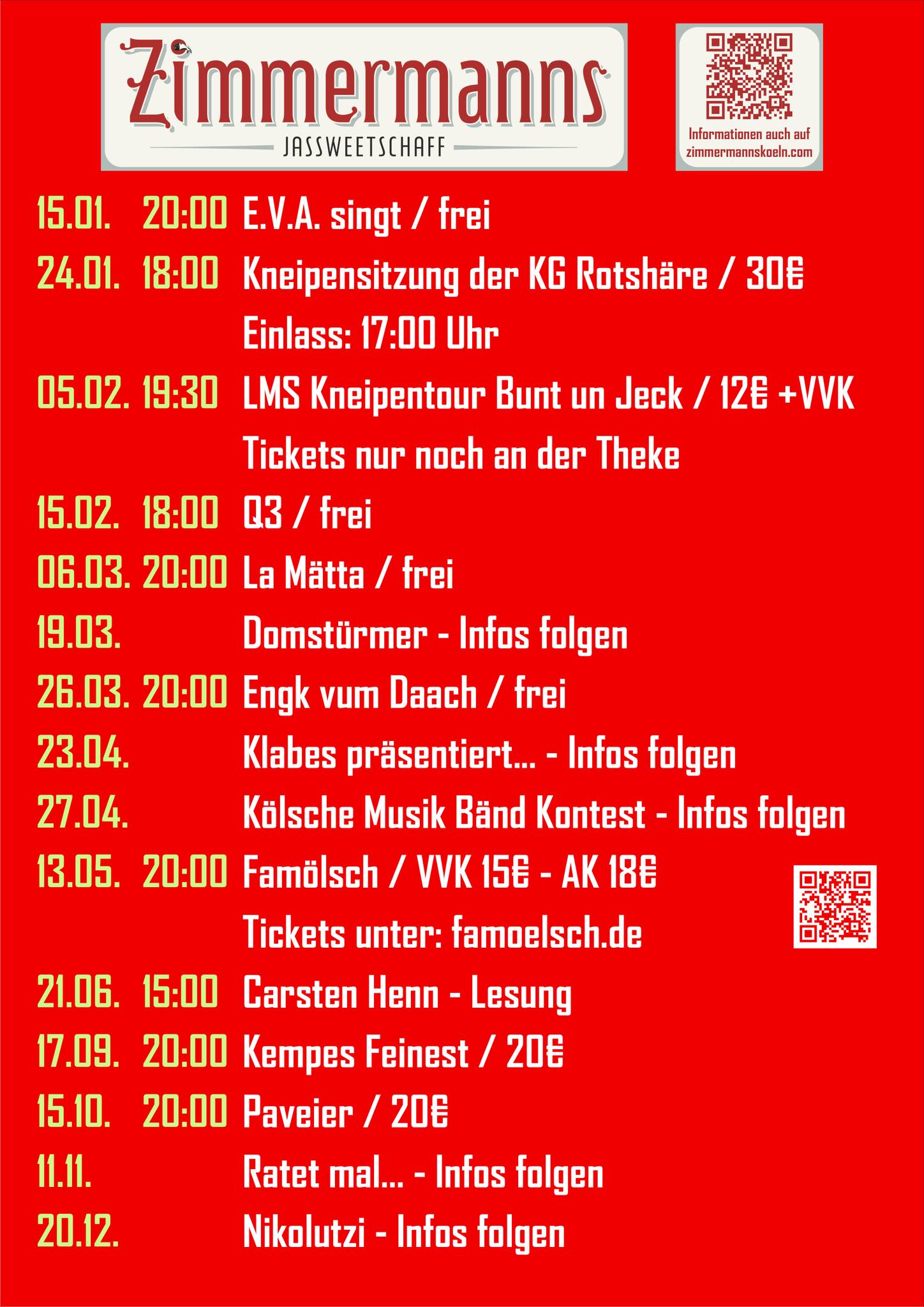 die Termine vom Piranha und vom Zimmermanns,